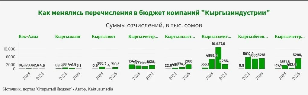 Согласно отчету, в 2023 году прибыль поступила только от шести дочерних компаний, составив 8,3 миллиона сомов, а в 2024 году – от четырех, на общую сумму 56,5 миллиона сомов, как указано в сообщении Счетной палаты.