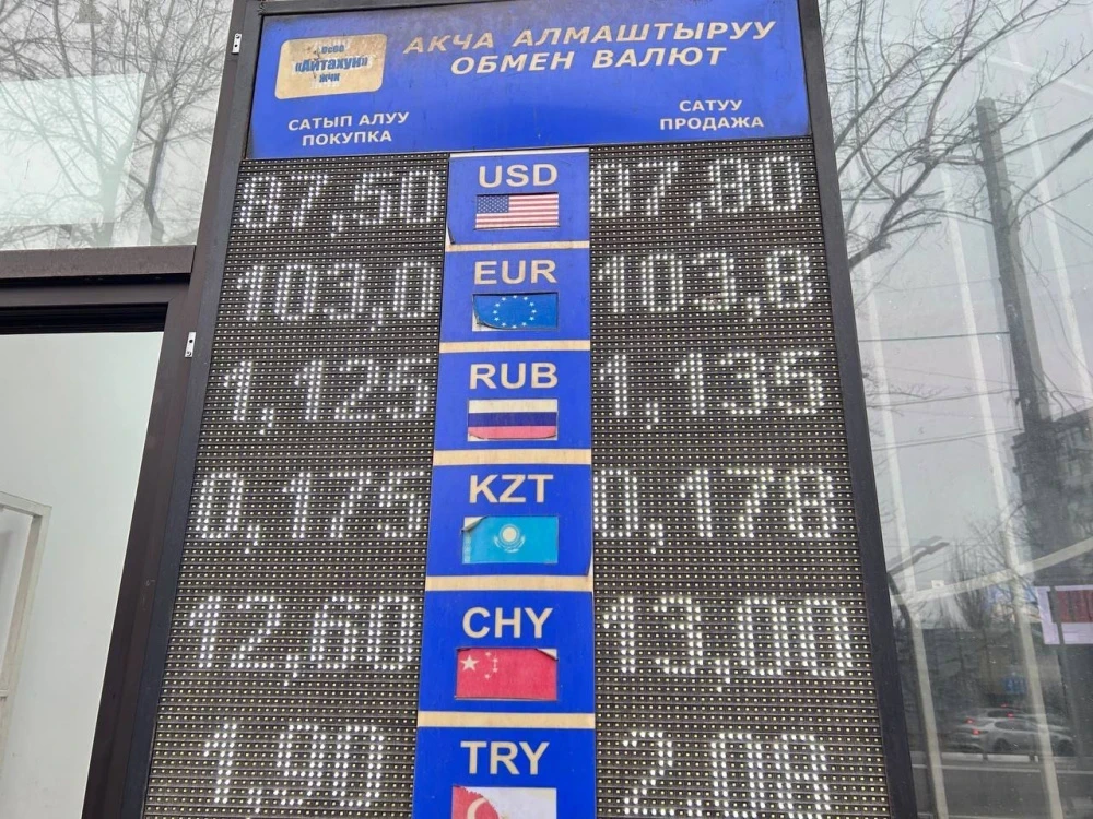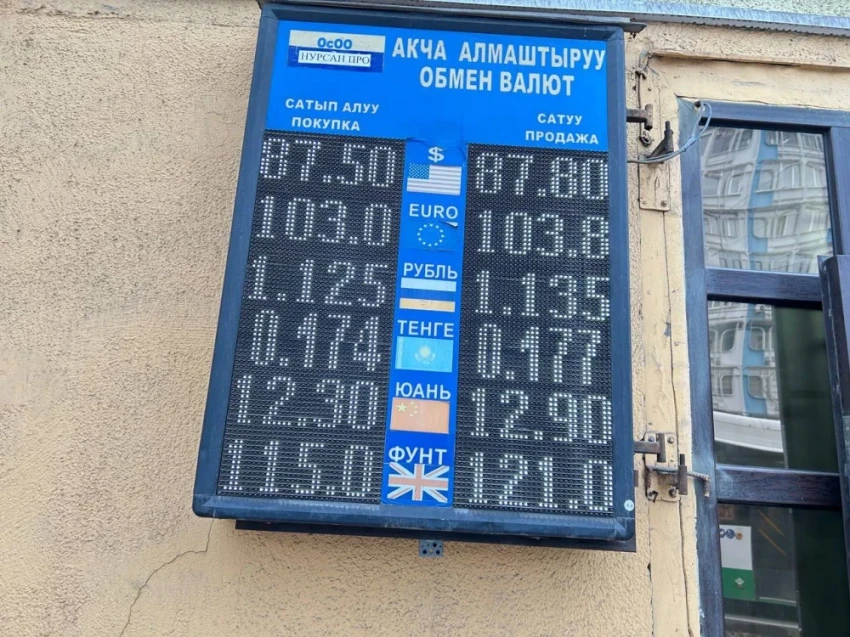 Курс доллара остался на уровне: покупка - 87,5 сома, продажа - 87,8.