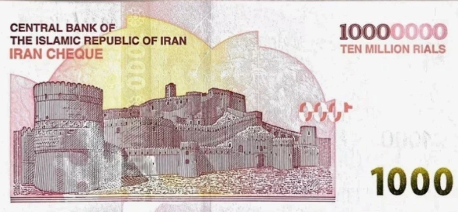На лицевой стороне новой розовой банкноты изображена мечеть Джаме, построенная в IX веке в Йезде, а на обратной стороне — древняя цитадель Бам, возраст которой составляет 2500 лет. Ранее самой крупной банкнотой в Иране была банкнота номиналом 5 миллионов реалов, введенная в начале февраля.