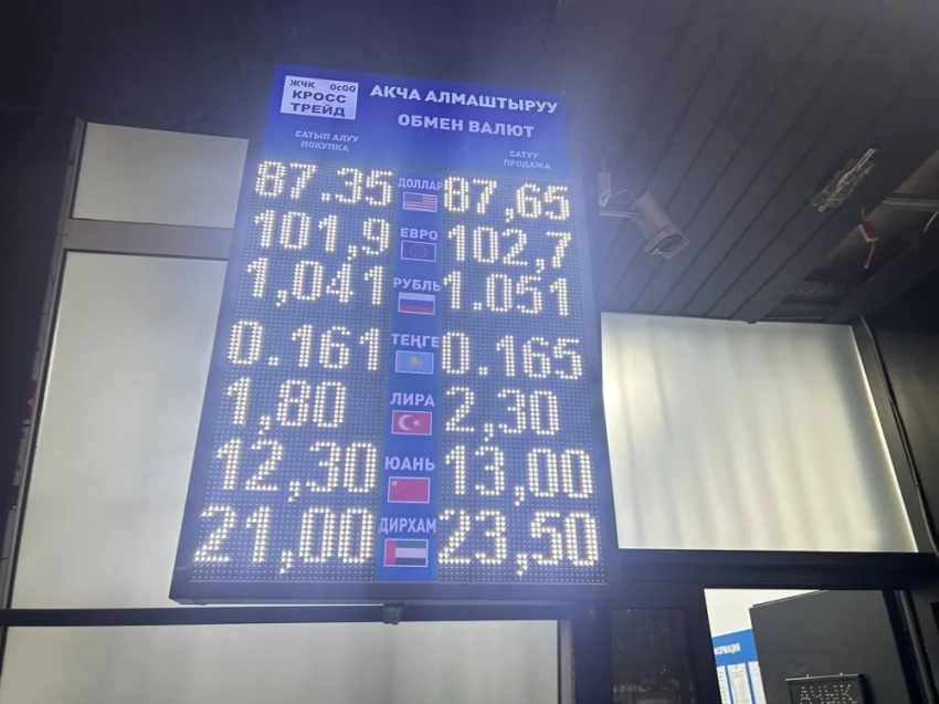Курс доллара остался на уровне: покупка - 87,35 сома, продажа - 87,65.