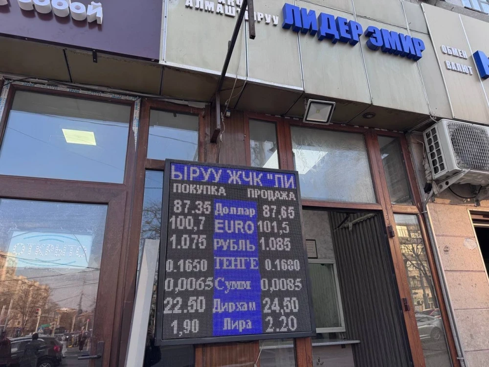 Цена евро также снизилась. Его покупка осуществляется по 100,7-101,0 сома, а продажа — по 101,5-101,8 сома.
