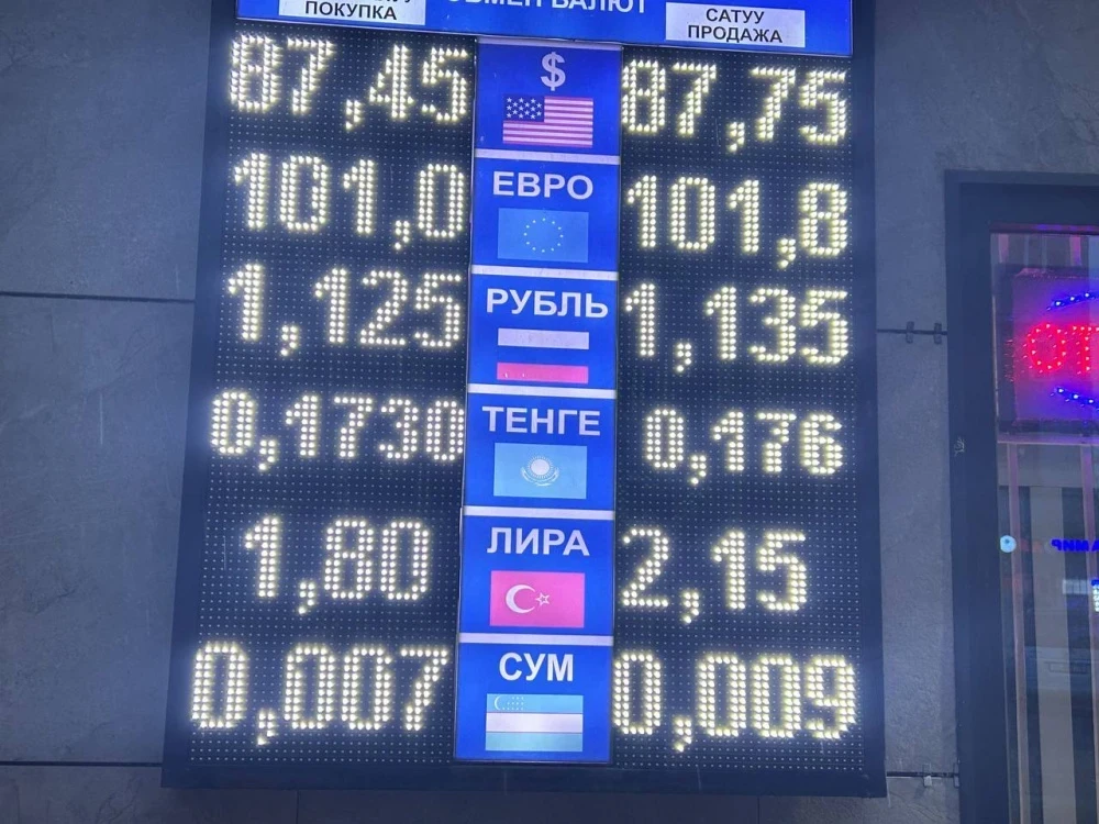 Курс доллара остался без изменений: покупка - 87,45 сома, продажа - 87,75 сома.