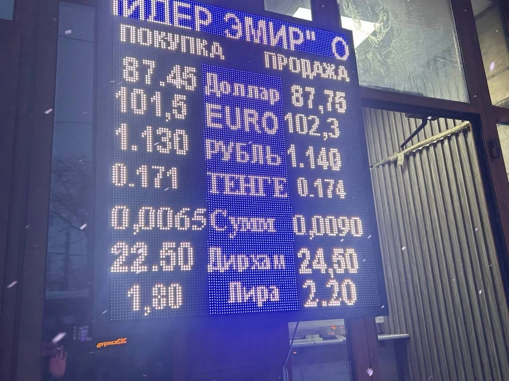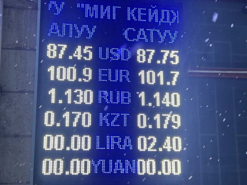 Курс доллара продолжает оставаться на стабильном уровне: его покупают за 87,45 сома, а продают по 87,75.