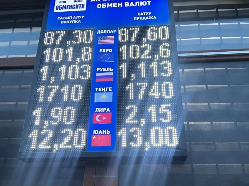 Курс рубля также претерпел изменения: он стоит 1,1 сома при покупке и 1,11 при продаже.