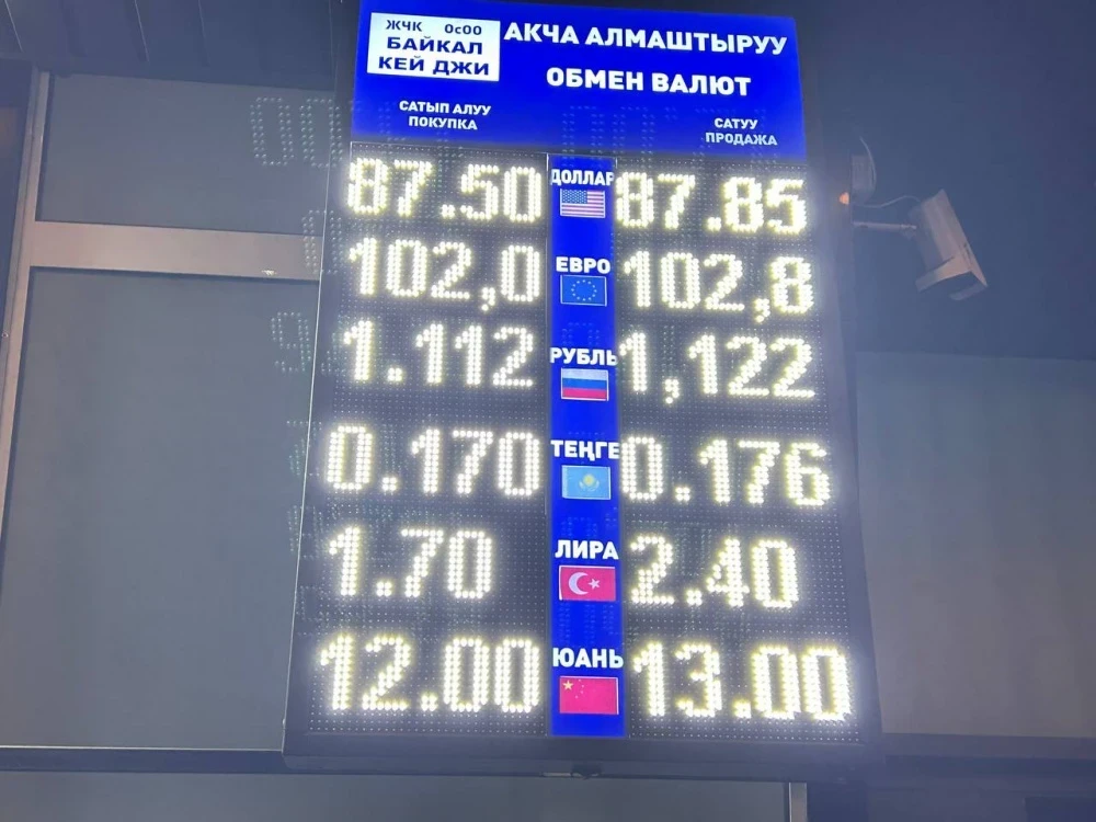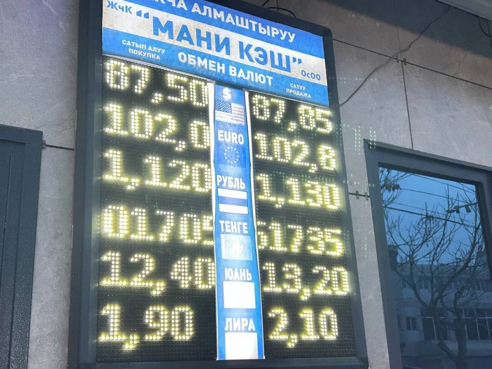 Курс доллара остается неизменным: покупка составляет 87,5 сома, а продажа — 87,85 сома.