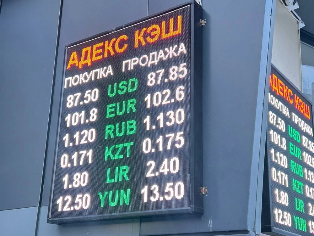 Курс доллара остался прежним: его покупают по 87,5 сома, а продают по 87,85.