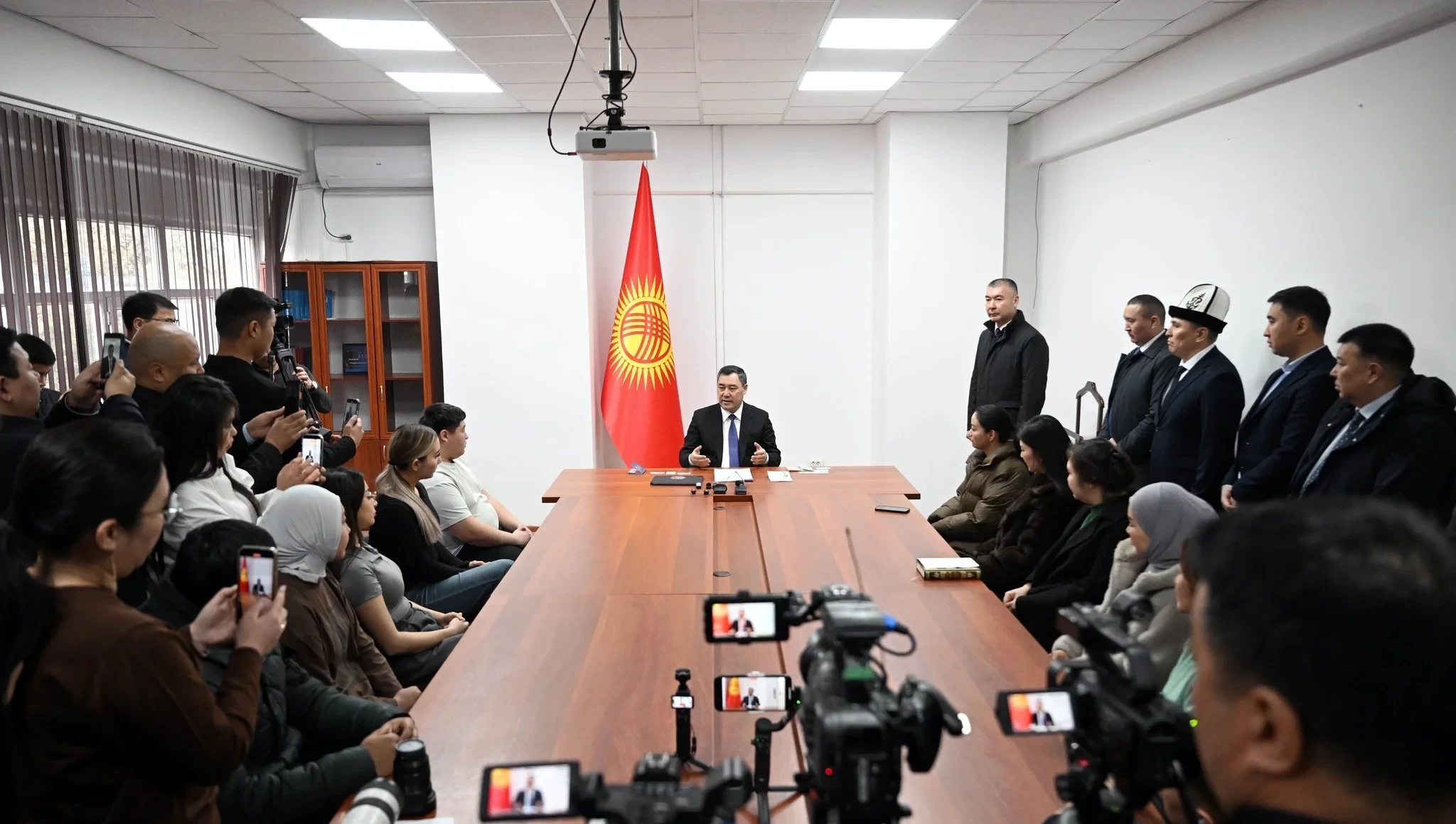 После этого Садыр Жапаров встретился с курсантами и директорами частных автошкол, чтобы разъяснить меры по снижению дорожно-транспортных происшествий, связанных с нарушениями ПДД.