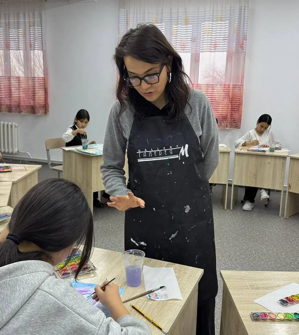 Особое внимание привлекли мастер-классы, организованные народным артистом КР Бактыбеком Ыбыкеевым по вокалу и художницей Зульфией Акимовой из «Галереи М» под руководством директора Мээрим Акматкуловой. Дети имели возможность пообщаться с мастерами и задать им вопросы в непринужденной обстановке, что позволило им узнать больше о творческих профессиях и мире искусства.