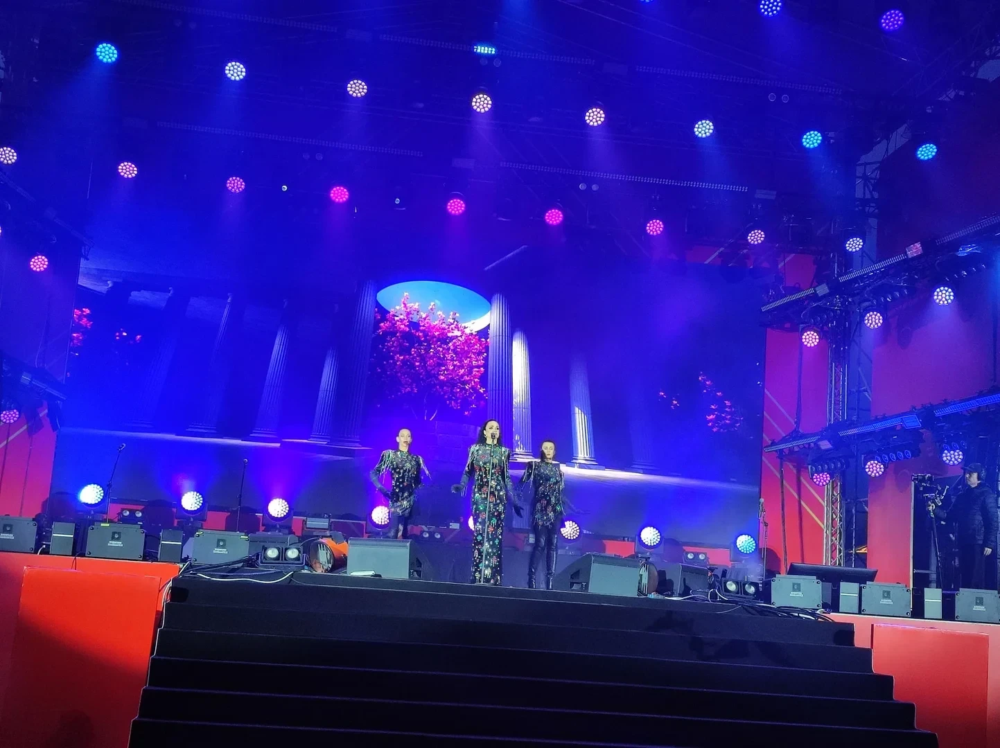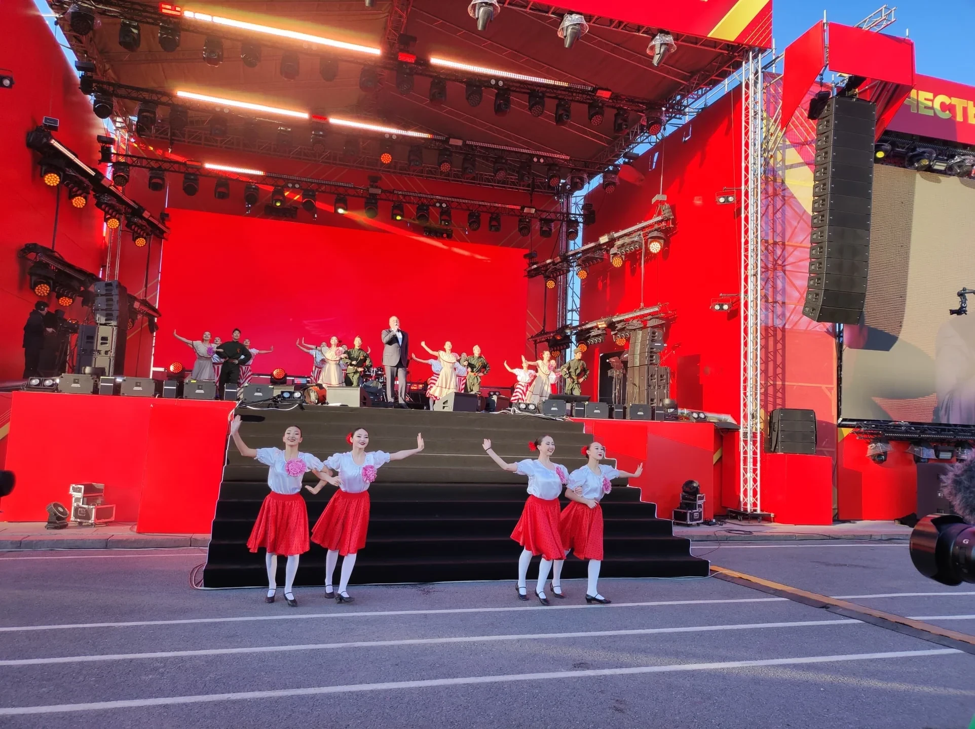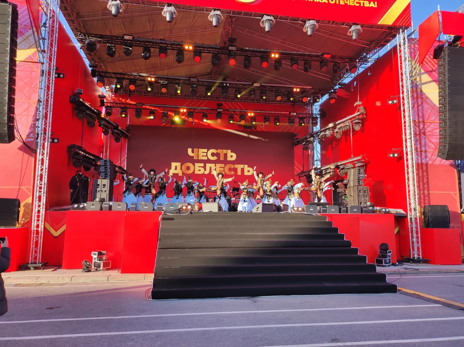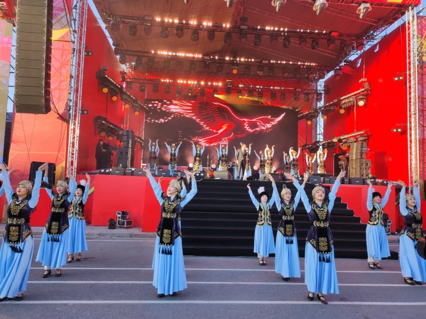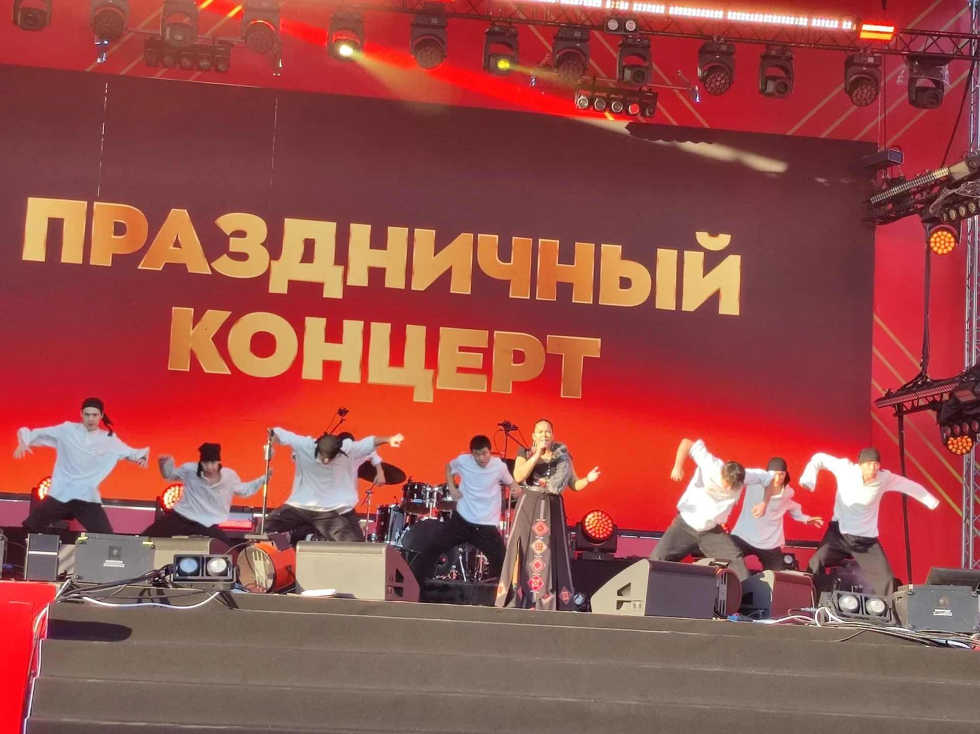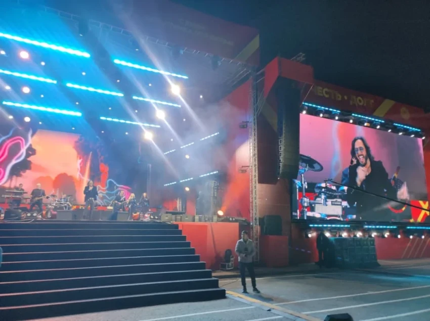 Начало мероприятия состоялось в 17:00 и привлекло множество зрителей. Экспрессивная атмосфера охватывает площадь: зрители активно поддерживают исполнителей, танцуют и подпевают.
