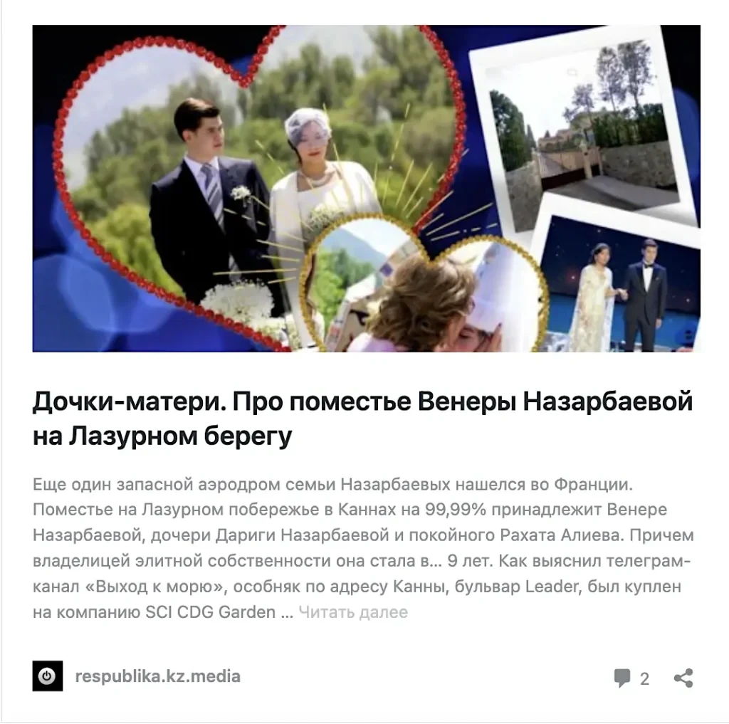 Речь идет о вилле «Мария Ирина» на Лазурном берегу. Авторы Nege.Aqsha нашли фотографии, которые полностью совпадают с описанием, данными Чигиринским и Дудем. На снимках можно увидеть роскошное имение с панорамным видом на море, ухоженным садом, бассейнами и отдельным гостевым домом.