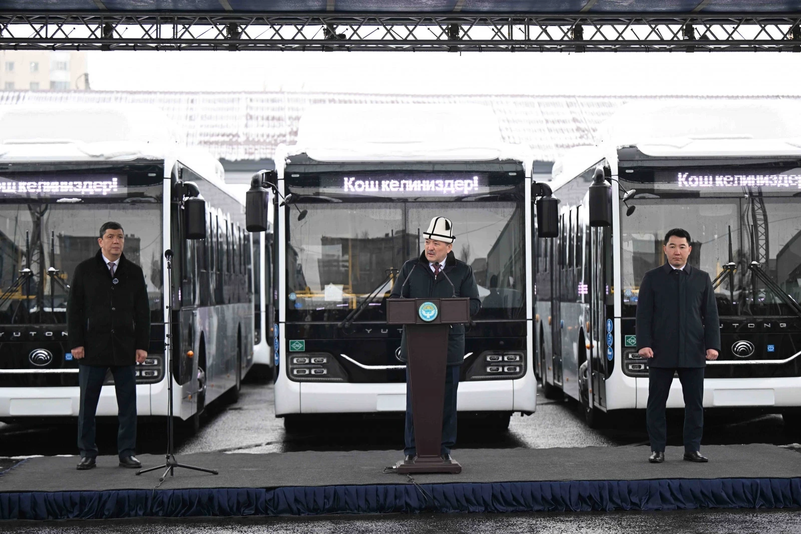 В Бишкеке состоялась передача 95 новых автобусов и 42 единиц специальной техники, которую провел председатель кабинета министров Кыргызстана Адылбек Касымалиев. Церемония прошла в депо № 1, как сообщила пресс-служба кабмина.