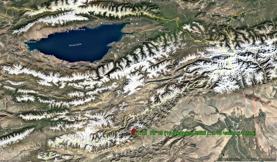 По предварительной информации, эпицентр находился на территории Китая, в 34 километрах к югу от села Бедель и в 140 километрах к югу от города Каракол.