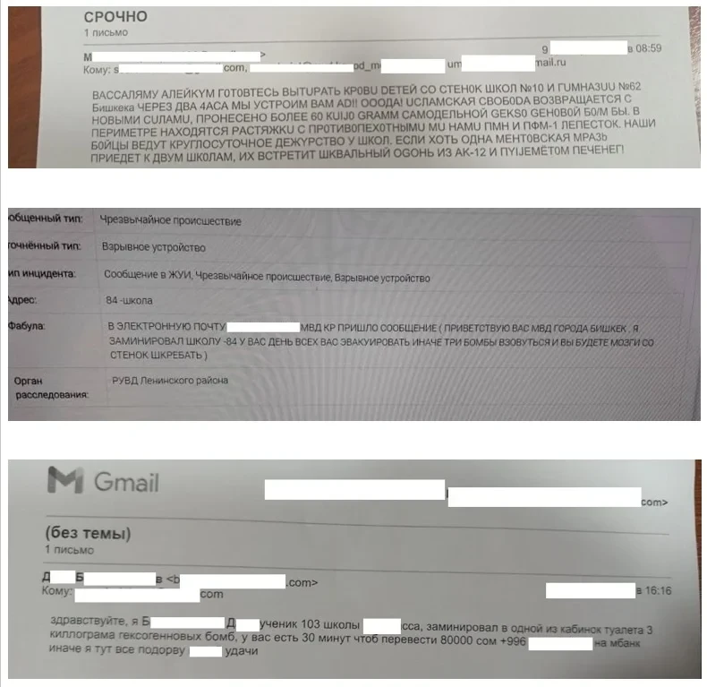 Чаще всего подобные инциденты касаются школ, торговых и развлекательных центров. Ложные сообщения о терактах считаются завершенными с момента их поступления и могут повлечь серьезные последствия, включая тюремное заключение. Уголовный кодекс Кыргызской Республики предусматривает уголовную ответственность по статье 259 «Заведомо ложное сообщение об акте терроризма».