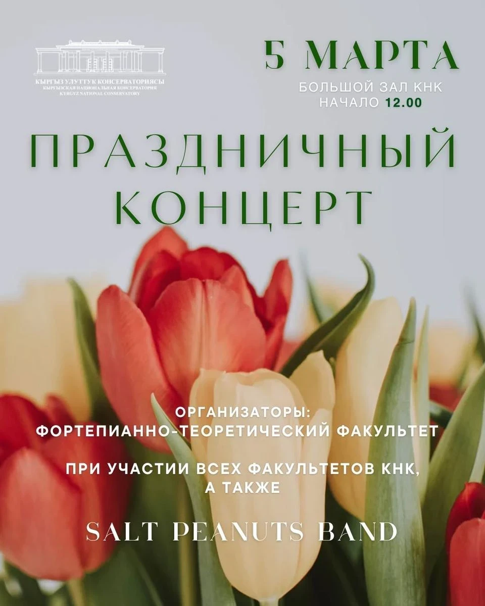 На концерте выступят все факультеты консерватории, а также специальный гость — Salt Peanuts Band. Программа включает разнообразные музыкальные номера и живое звучание, создающее атмосферу праздника.