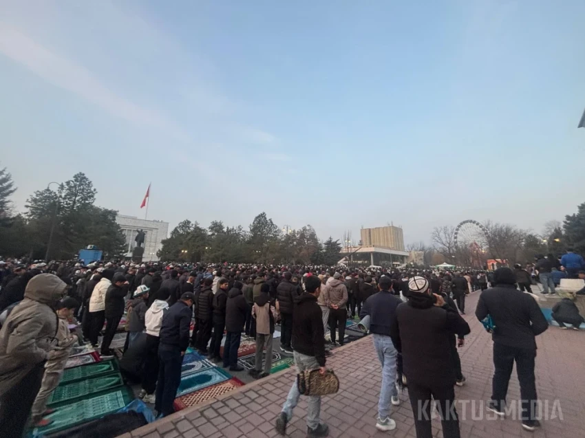 В центре Бишкека провели праздничный айт намаз. Видео, фото