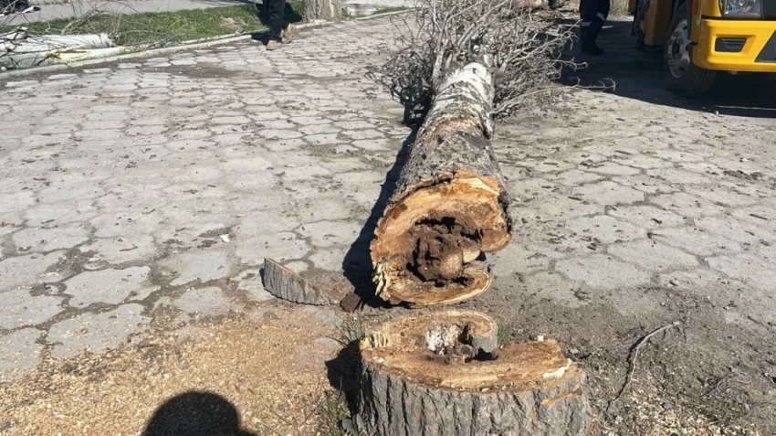 В настоящее время на улице Ауэзова проводится санитарная обрезка и удаление деревьев, которые могут представлять угрозу для местных жителей и инфраструктуры. Об этом сообщает пресс-служба мэрии Бишкека.