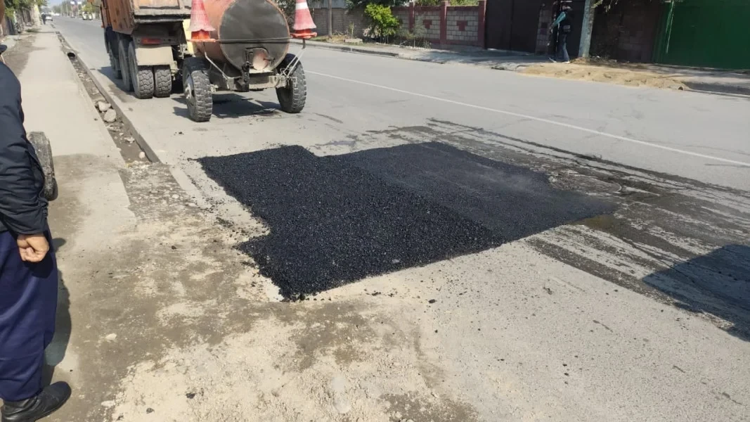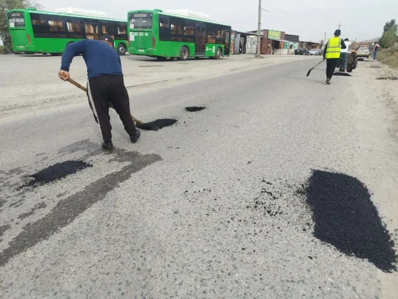 В Бишкеке продолжается ямочный ремонт дорог