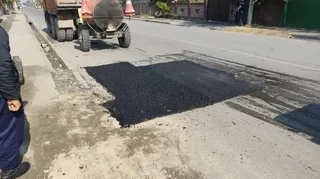 В столице Кыргызстана, Бишкеке, активно идет ямочный ремонт, который продолжается в рамках подготовки к зимнему сезону.