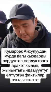 Дайырбек Орунбеков, глава пресс-службы президента, опубликовал в социальных сетях информацию о подозреваемом в убийстве 17-летней Айсулуу Мукашевой, пропавшей на Иссык-Куле.