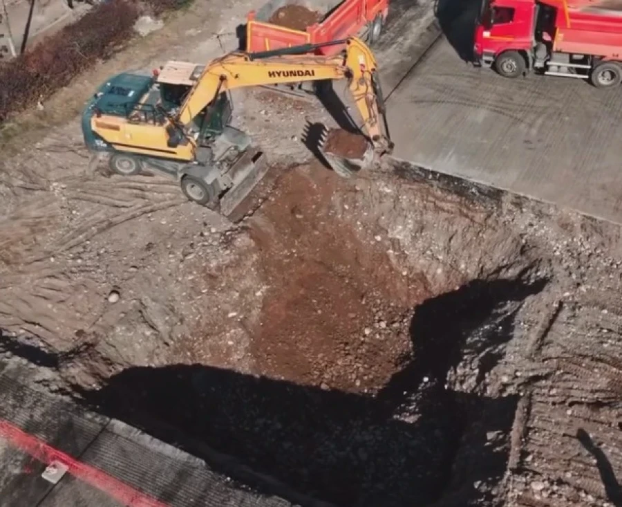 На данный момент подрядная организация занимается выемкой грунта для котлована.