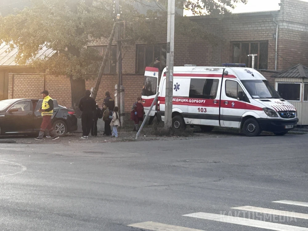 На ул. Салиевой в Бишкеке произошло ДТП. Одна из машин слетела в кювет