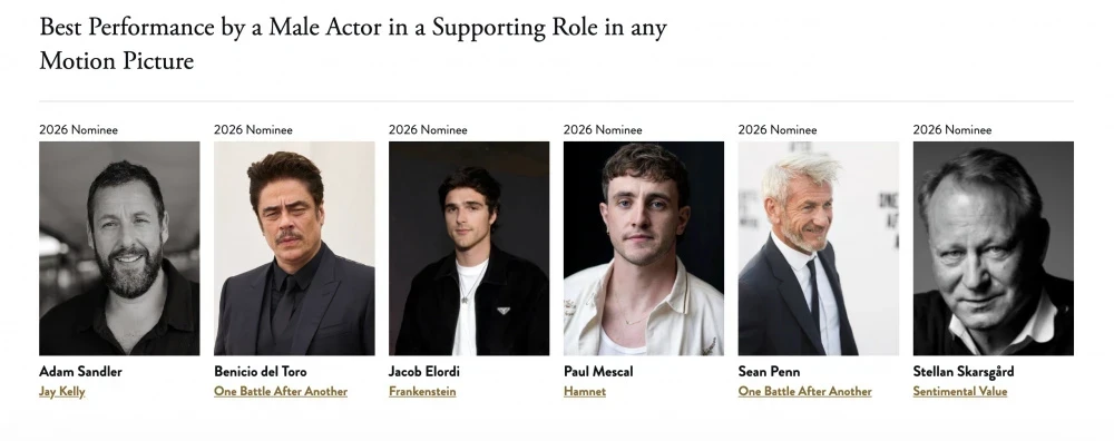Фильм Пола Томаса Андерсона "Битва за битвой" стал главным претендентом, получив девять номинаций, включая категории "Лучший фильм", "Лучший режиссер" и "Лучший сценарий". Следом идут "Сентиментальная ценность" с восемью, "Грешники" с семью и "Гамнет" с шестью номинациями. "Франкенштейн" и мюзикл "Злая: Навсегда" получили по пять номинаций.