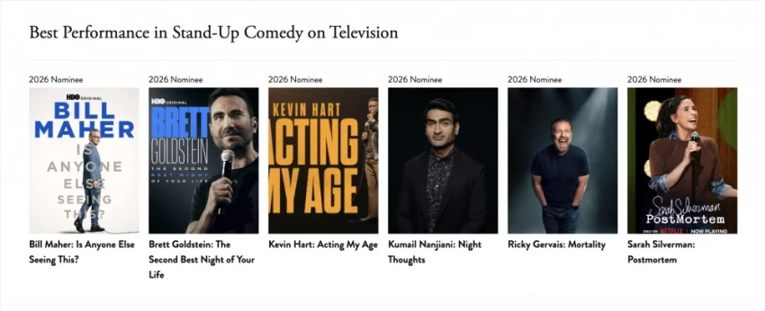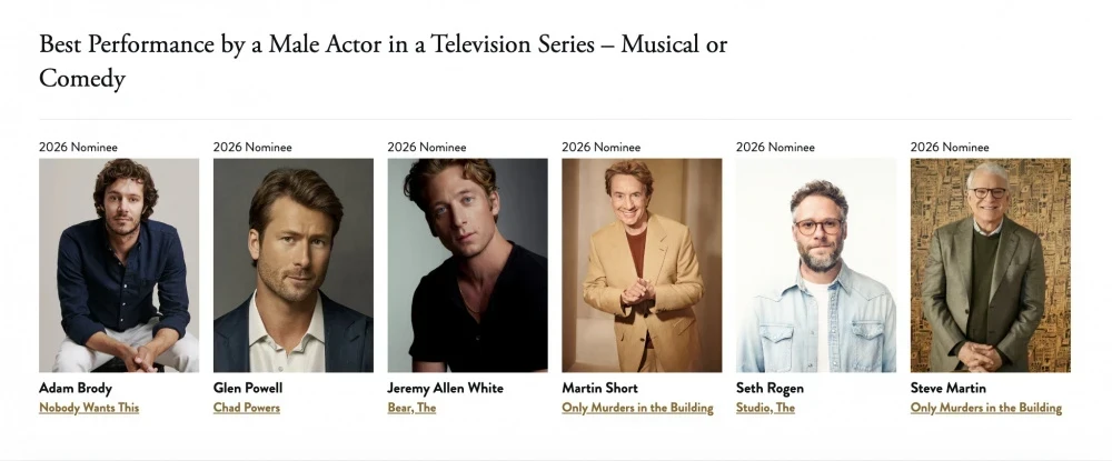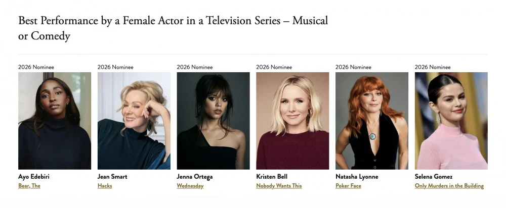 Организаторы престижной и давней американской премии за достижения в телевидении и кино "Золотой глобус" обнародовали список номинантов на 2026 год. В этом году они решили расширить номинации, включая подкасты и сохранив категории, введенные ранее для стендап-комедии и кассовых фильмов.