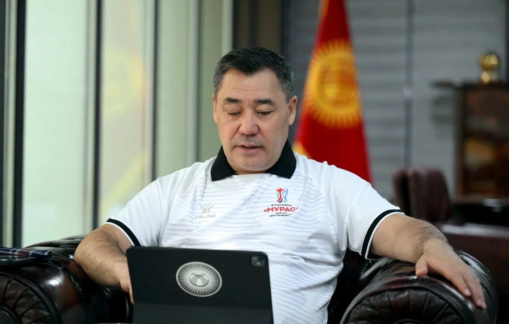 Президент Садыр Жапаров принимает участие в футбольном турнире «Мурас», как сообщил пресс-секретарь главы государства Аскат Алагозов.