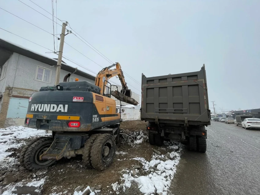 В городе Ош продолжаются работы по расширению улиц Санкт-Петербург и Абдувалиева, в ходе которых осуществляется очистка строительных отходов.