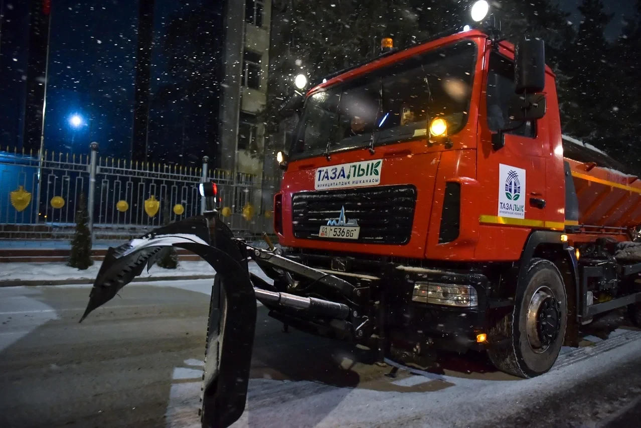 В связи с начавшимся снегопадом, муниципальное предприятие «Тазалык» начало свою работу по уборке снега в ночь на 23 января.