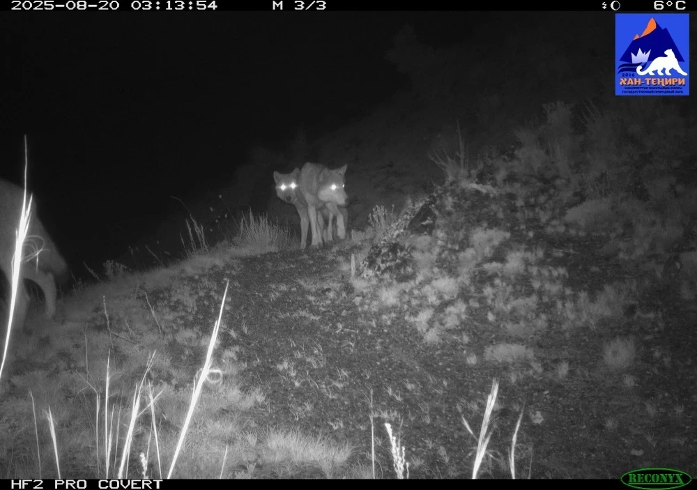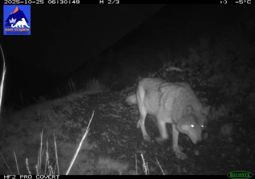 Фотоловушка в парке "Хан-Тенири" запечатлела снежного барса, рысь и волков.