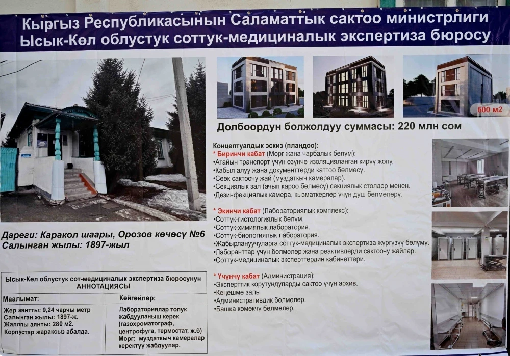 Завершая свой визит, глава кабинета министров побывал в Иссык-Кульском областном бюро судебно-медицинской экспертизы, размещенном в аварийном здании, построенном в 1897 году. Здесь функционируют три подразделения, и Касымалиев поручил государственным органам рассмотреть возможность модернизации инфраструктуры, включая строительство нового здания и приобретение необходимого оборудования.