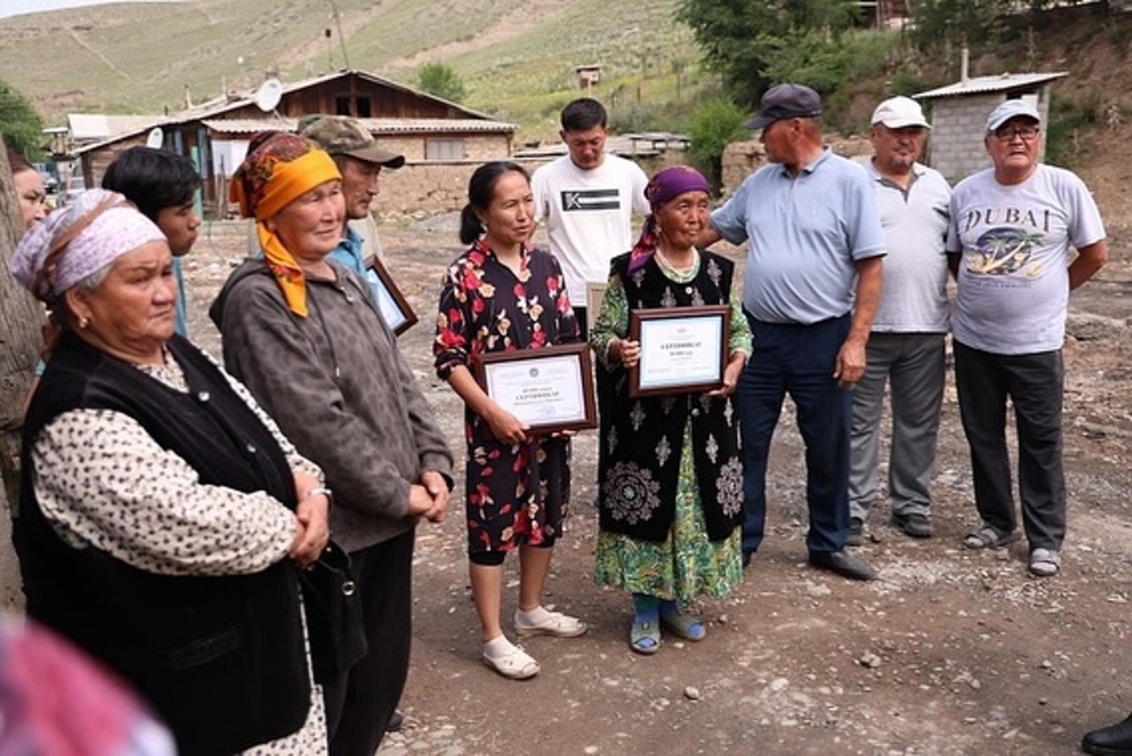 Во время визита каждую из пострадавших семей наградили денежными сертификатами, выделенными из резервных фондов торага Жогорку Кенеша и председателя кабинета министров.