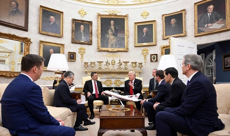 Дональд Трамп, в свою очередь, радушно встретил Садыра Жапарова и отметил прогресс в двусторонних отношениях.Президент США выразил уверенность, что конструктивное взаимодействие на высоком уровне будет содействовать дальнейшему развитию отношений и реализации совместных инициатив, направленных на обеспечение устойчивого развития и безопасность народа обеих стран.