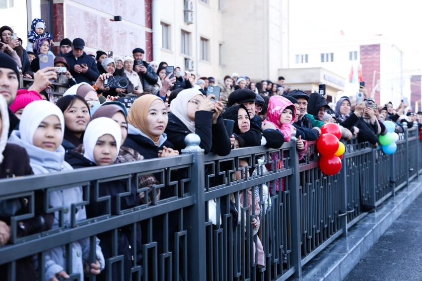 На церемонии присутствовали мэр города Женишбек Токторбаев, полномочный представитель президента в Ошской области Аманкан Кенжебаев, заместитель министра культуры, информации, спорта и молодежной политики Аскаралы Мадаминов, министр культуры Узбекистана Озодбек Назарбеков, а также аким Андижанской области Шухрат Абдурахманов, вместе с жителями города.