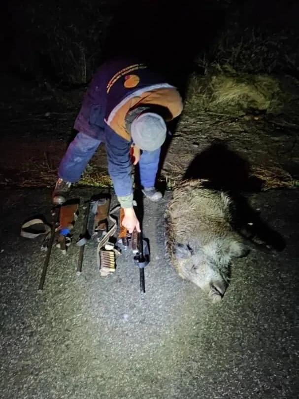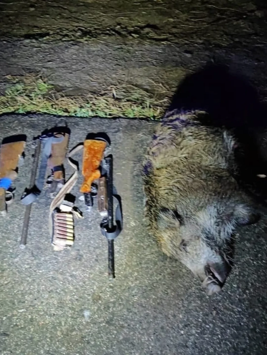 При проверке у задержанного были обнаружены туша дикого кабана и три единицы огнестрельного оружия, используемого для незаконной охоты.