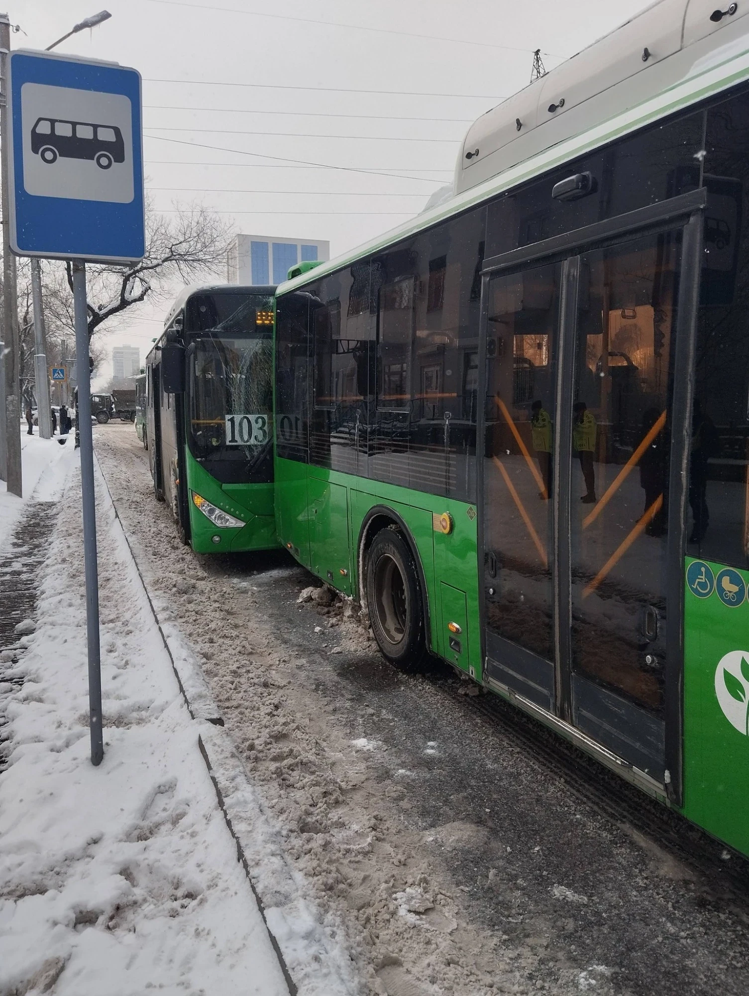 В Бишкеке на пересечении улиц Байтика Баатыра и Медерова столкнулись автобусы