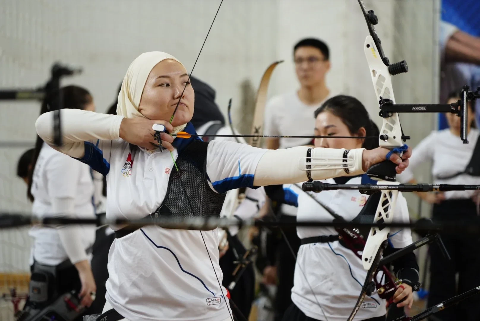 В числе присутствующих были такие личности, как Мелис Тобокелов, директор Дирекции по олимпийским видам спорта, и Эльнура Осмоналиева, президент Федерации стрельбы из лука, а также тренеры и участники соревнований.