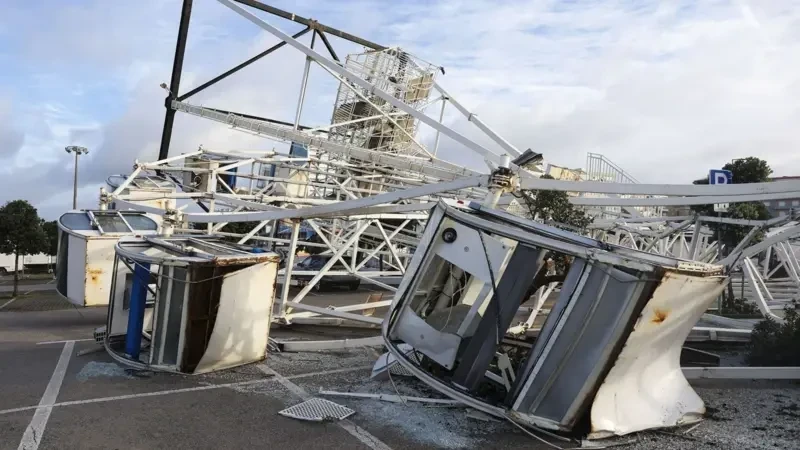 В прибрежном Фигейра-да-Фош произошло опрокидывание колеса обозрения, а несколько автомобилей пострадали из-за того, что ветер сорвал часть крыши здания.