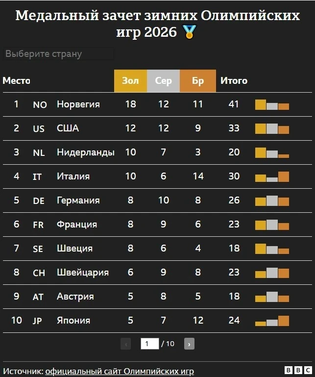 По итогам Олимпиады первое место в медальном зачете заняла сборная Норвегии с 18 золотыми медалями и 41 медалью в целом. Лыжники, включая многократного чемпиона Йоханнеса Хёсфлота Клебо, внесли значительный вклад в этот успех.Сборная США завершила свои выступления с 12 золотыми медалями, и их победа в хоккейном турнире стала одним из символов Игр-2026.