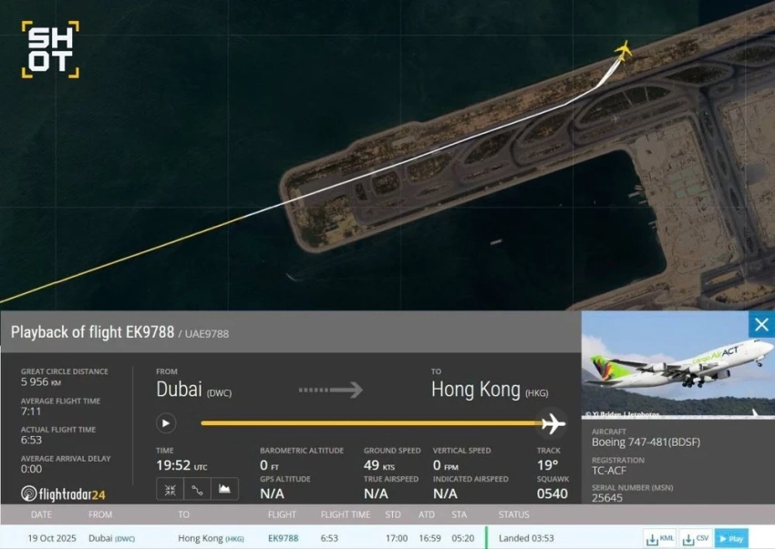 Инцидент произошел около 3:50 по местному времени. Самолет совершал рейс из Дубая. Согласно информации от Flightradar24, это был Boeing 747, принадлежащий турецкой авиакомпании AirACT, который выполнял грузовые перевозки для Emirates. Предполагается, что он столкнулся с наземным транспортом.