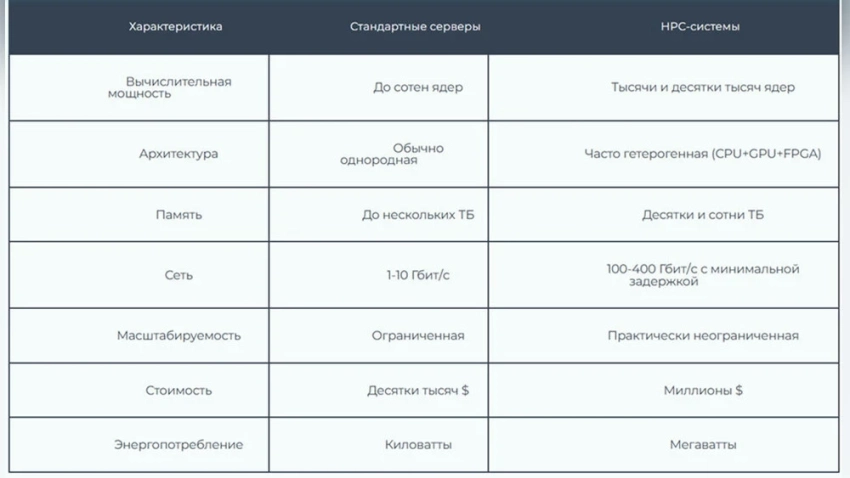Однако эти отличия не означают, что для каждой научной задачи необходим суперкомпьютер размером с целый зал. Современные HPC-решения варьируются от компактных систем до массивных комплексов, и важно выбрать подходящее оборудование для конкретных задач.