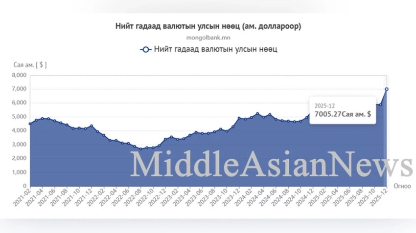 По последним данным, предоставленным центральным банком Монголии, к концу 2025 года валютные резервы страны достигнут значительного показателя в $7 миллиардов (точно $7 005 270 000).