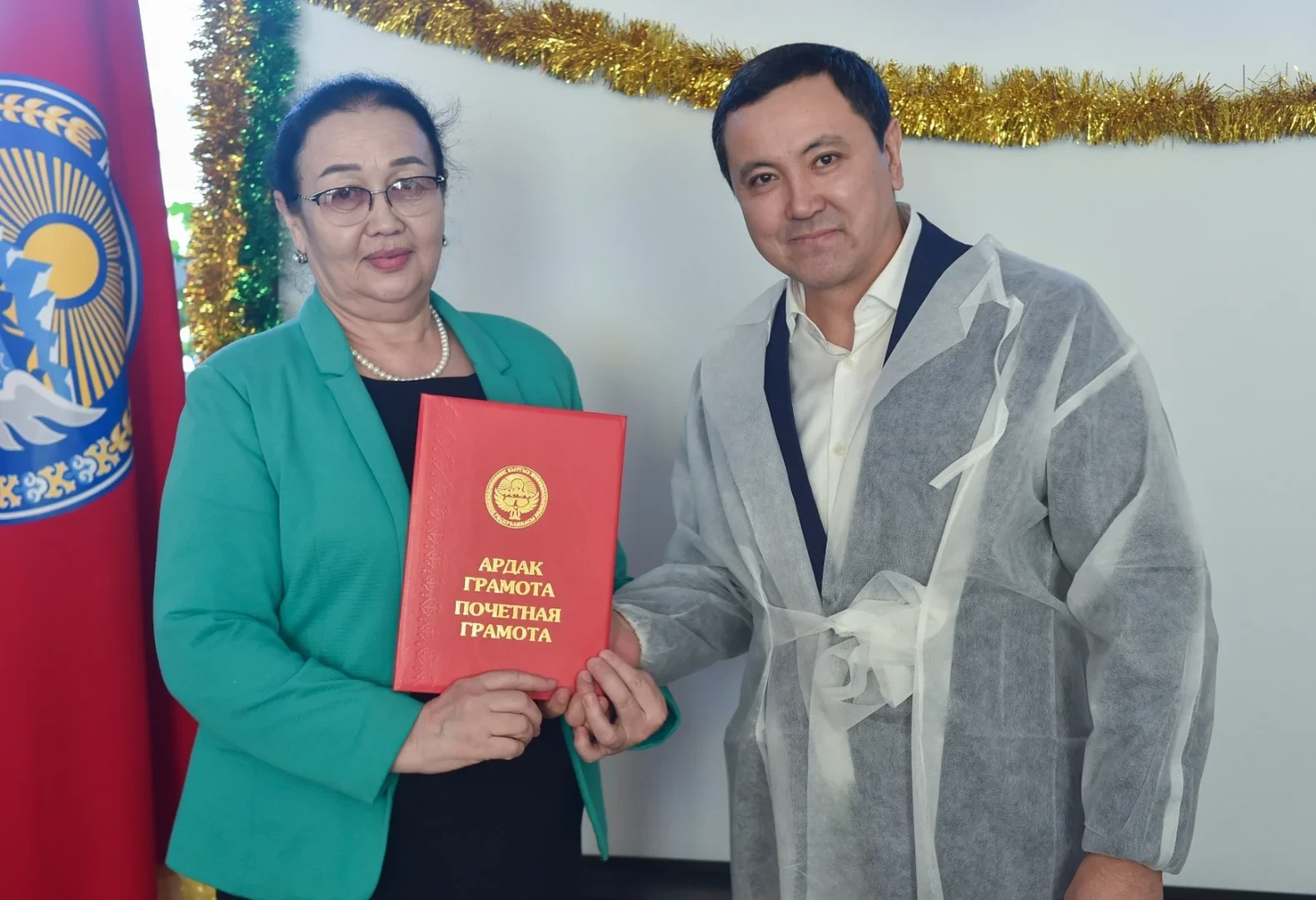 В завершение мероприятий, заместитель министра Рыспек Сулкайдаров передал тёплые поздравления и слова поддержки коллективу и детям Республиканского специализированного центра реабилитации детей и семьи с поражением центральной нервной системы и нарушением психики в городе Токмок. Детям были вручены новогодние подарки, а сотрудникам - премии и почетные грамоты Министерства здравоохранения Кыргызской Республики. Также учреждение получило сертификат на сумму 200 тысяч сомов в поддержку своей деятельности.